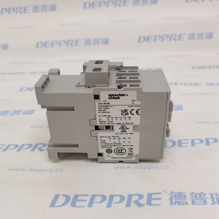 CA7-30-10-120 隸屬于瑞士 Sprecher+Schuh CA7 系列,是該系列中中功率電機控制的核心型號。CA7 系列以 45mm 超窄寬度(同功率最小尺寸)和高可靠性(百萬次機械操作)著稱,專為空間受限的工業控制柜設計,覆蓋 75HP(@460V/575V) 以下電機負載。